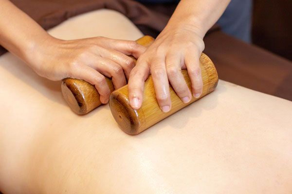 Bambusstöcke werden verwendet, um Druck auf verschiedene Muskelgruppen auszuüben. Dadurch werden gezielt Verspannungen in der Muskulatur und Verklebungen im Bindegewebe gelöst.